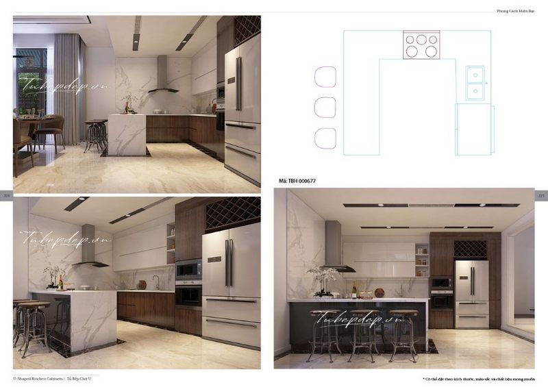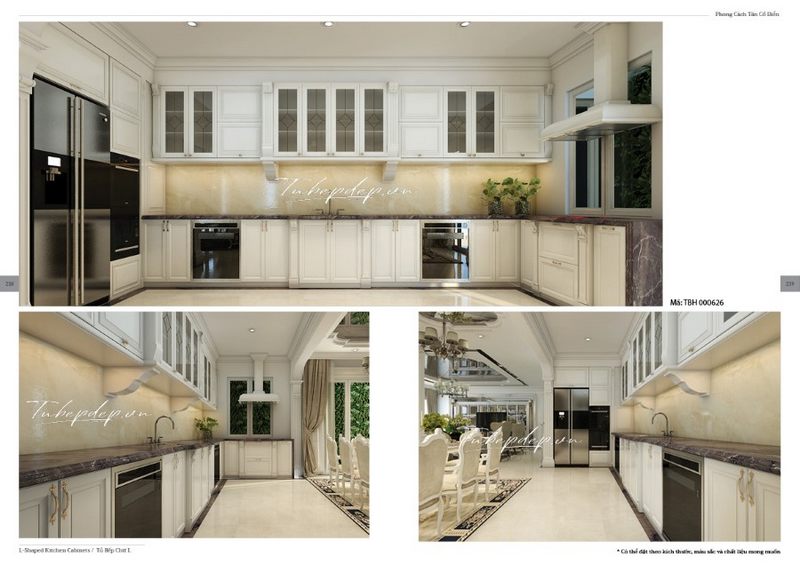 Mẫu tủ bếp tân cổ điển có màu trắng trẻ trung hoàng gia biến căn bếp của biệt thự, nhà phố trở nên cao cấp và rộng rãi hơn